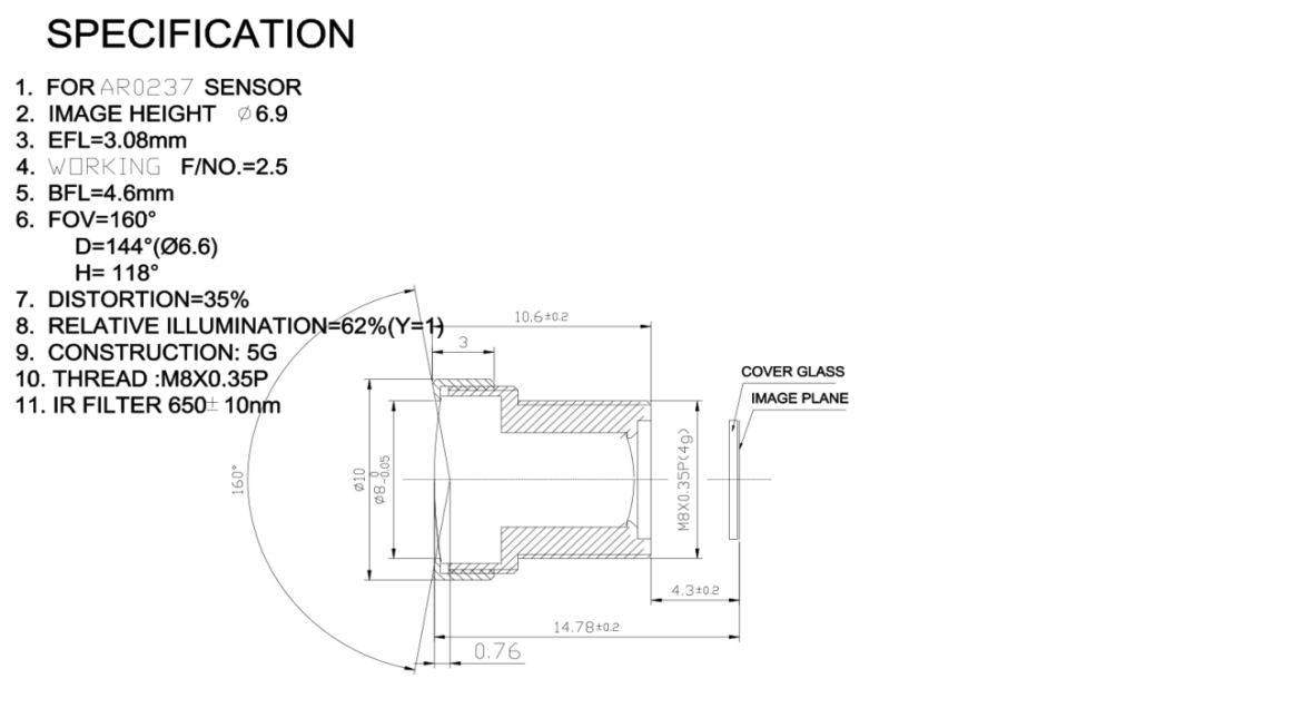 IMX989 fisheye lens IMX283 fisheye lens 1-inch fisheye lens
